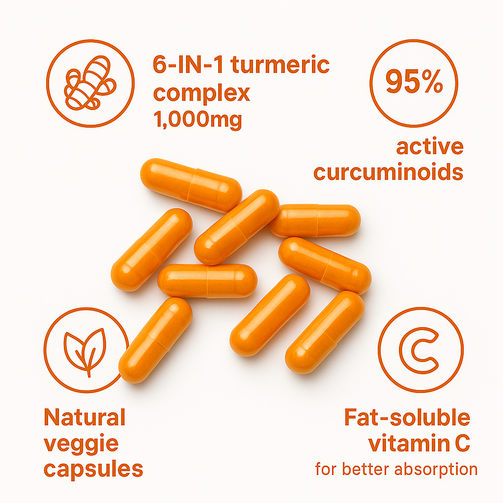 Ours contains 95% curcuminoids - the active compound - plus ingredients that improve absorption and boost effectiveness.